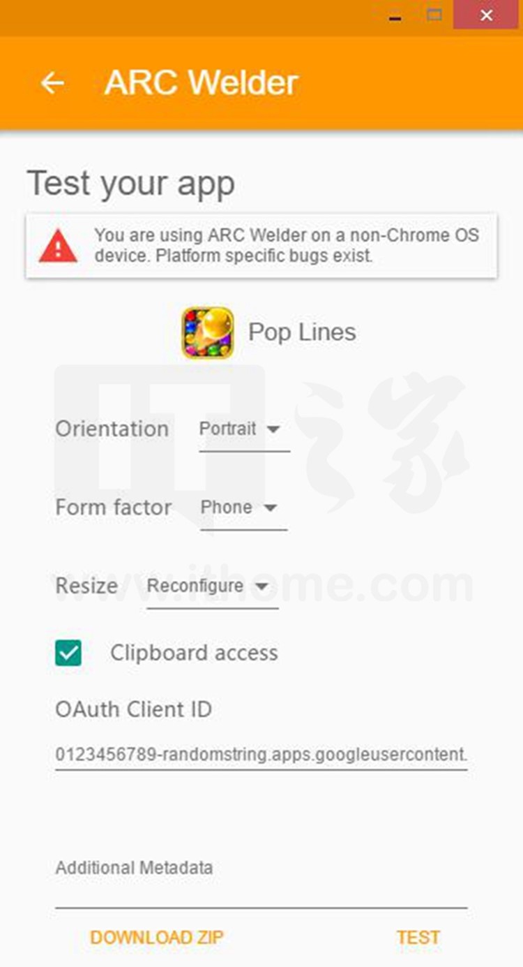 设置完成后,我们点击TEST按钮,ARC Welder将弹出一个新的窗口,安卓应用就就在这个窗口里运行;