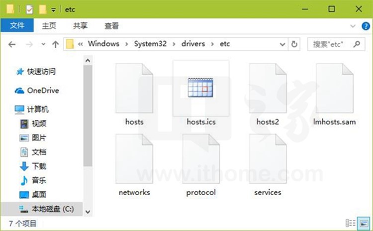 将其中的文件hosts重命名为hosts2(该操作的目的是备份原有的hosts,文件名可以修改成任意的值);