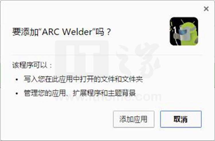 再在接下来弹出的对话框中点击添加应用按钮来安装该扩展程序;