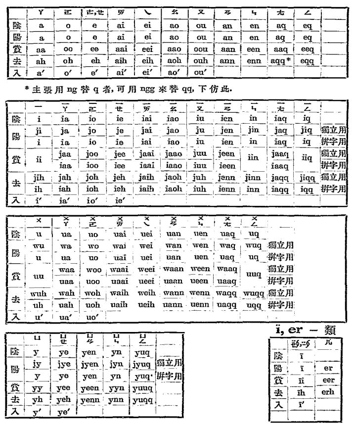 ……这个制度(指拉丁化)的要领是赵元任先生主张的。他在美国哈佛大学教美国人中国话,曾经实验过他的拟案(指国语罗马字草稿),并已有很满意的成绩。他把他的拟案的要旨寄给我看,我看了就起手修改一番。新近我的朋友林玉堂(林语堂)先生从德国回来,我们俩又共同修改一番。后来我又自己斟酌改订一过,我们这个音声字制就是这样产生出来的。……