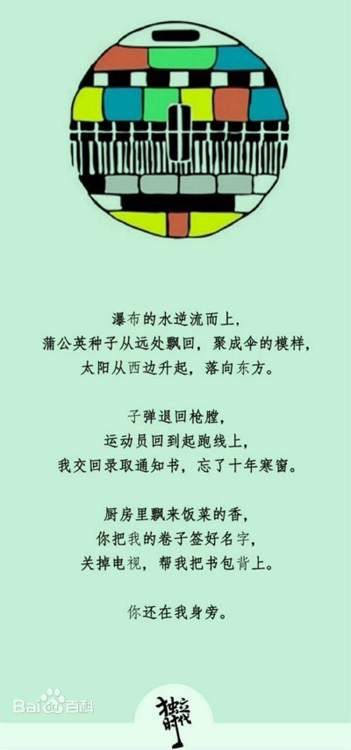 "这首质朴动人的诗是香港中文大学《独立时代》杂志微情书征文大赛一等奖作品《你还在我身旁》,是一首送给母亲的小诗,作者戴畅是一位大东北可爱的孩子,这首诗是其在香港求学期间,独自度过春节时期发表的作品。值得一提的是,这首动人的小诗,一度被误传为其母已经过世的怀念之诗。实际却并非如此,这位幸福的母亲并没有离世,希望这篇文章能够对谣传起到更正的作用,也祝天下父母都平安快乐。"