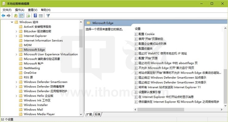 通过左侧的树形导航进入计算机配置-管理模板-Windows组件-Microsoft Edge;