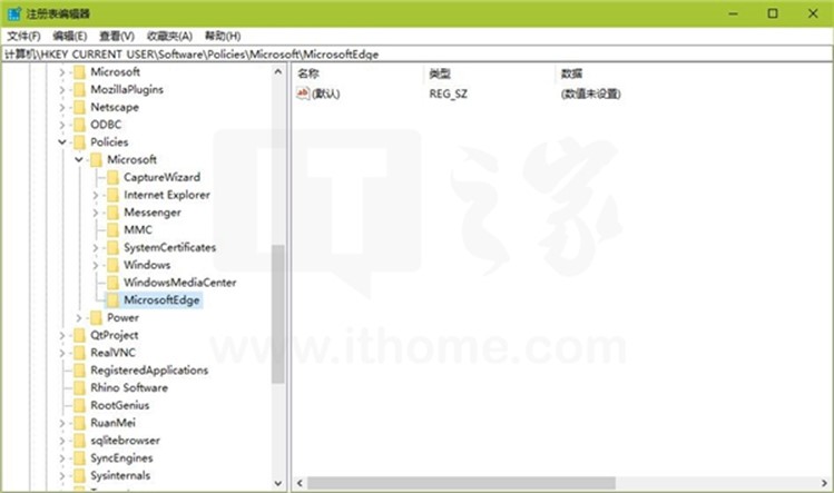 把鼠标光标对准刚刚新建的MicrosoftEdge项,单击右键,选择新建-项,并把该项命名为: