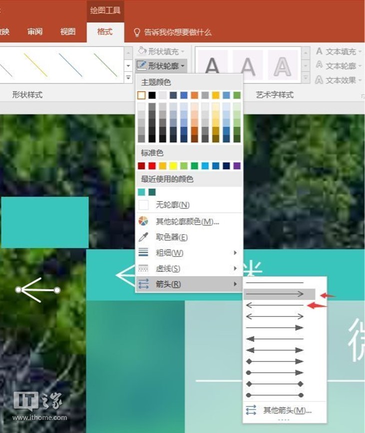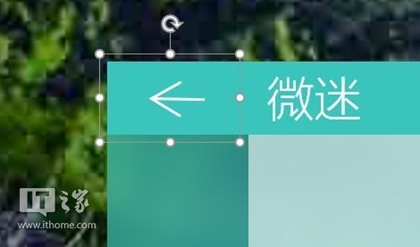 8.继续制作标题栏。先来制作返回键。把上一步的矩形复制过来,调整到合适大小。插入一个箭头。注意箭头样式要选择图示的这种。箭头调整长度和粗细后,移到小矩形上,组合,并移动到对的位置。