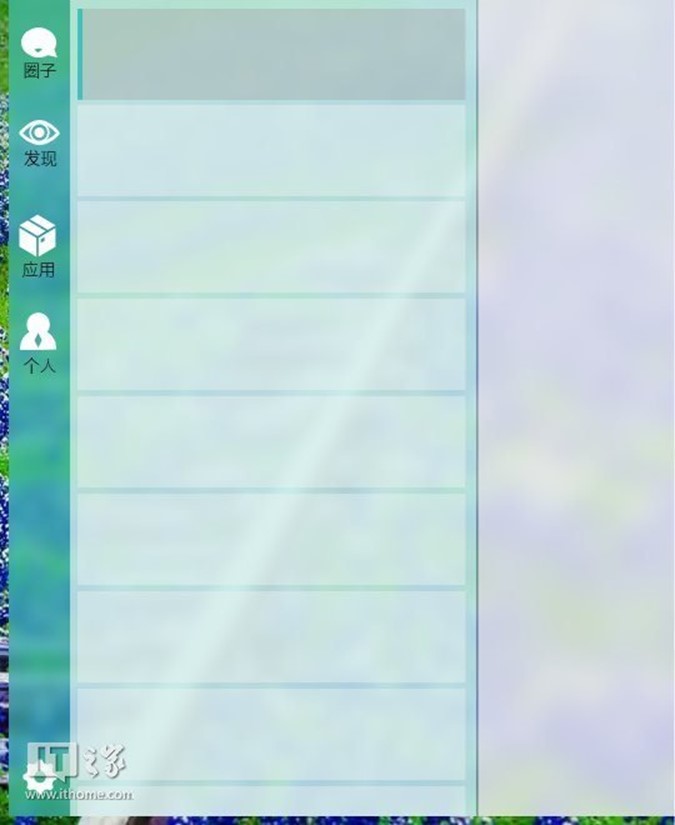 13.强化新闻栏。插入如图所示的白色矩形,无边框,透明度40%。这个矩形一放上去,就分割出新的一栏——菜单栏,最左边。它的右边,即刚刚插入的矩形,才是真正的新闻栏。用文本框添加应用名到新闻栏上方。接下来,丰富菜单栏。