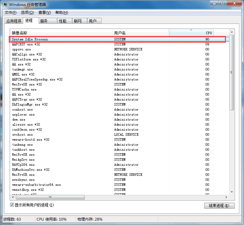 “System Idle Process”也就是“系统空闲进程”就代表着你CPU空闲的越多。