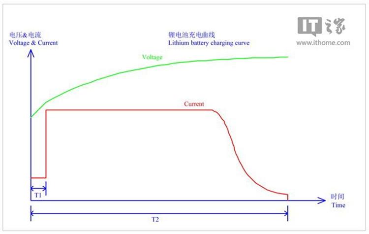对于一般智能手机来说,前80%采用的是快速充电,这时候电压持续上升,电流恒定地保持为最高输入,所以很快就可以充满前80%。之后采用的则是连续补充式充电,充电电压持续缓慢上升,此时充电电流迅速下降,所以充电速度变慢,这样设计的原因是对电池寿命和充电速度的一种权衡。