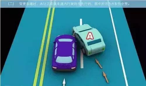 (二)变更车道时,未让正在该车道行驶的车现行的,图中所示为A车负全责。