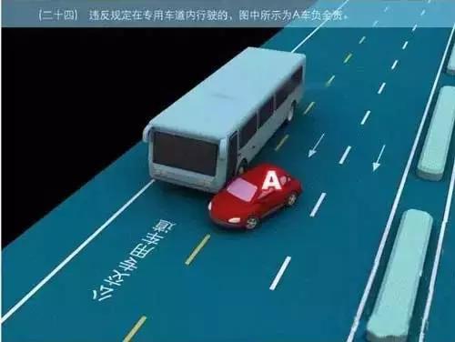 (二十四)违反规定在专用车道内行驶的,图中所示为A车负全责。
