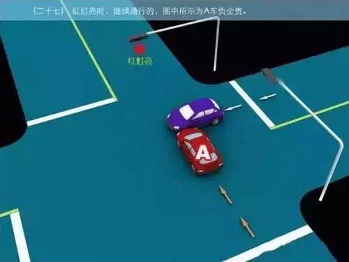 (二十七)红灯亮时,继续通行的,图中所示为A车负全责。