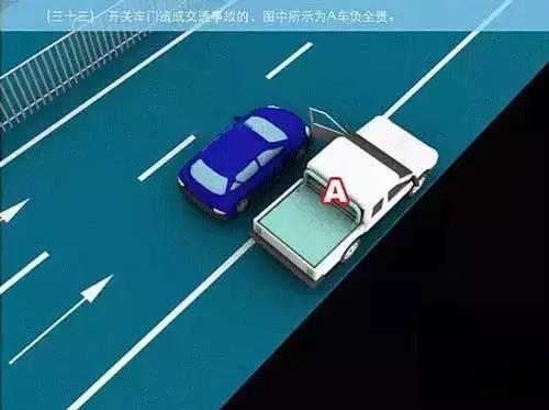(三十三)开关车门造成交通事故的,图中所示为A车负全责。
