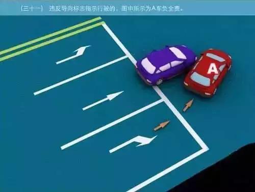 (三十一)违反导向标识指示行驶的,图中所示为A车负全责。