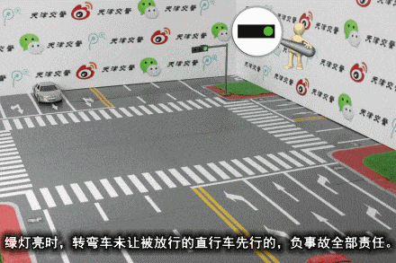 12、绿灯亮时,转弯车辆未让被放行的直行车辆先行的,负事故全责。