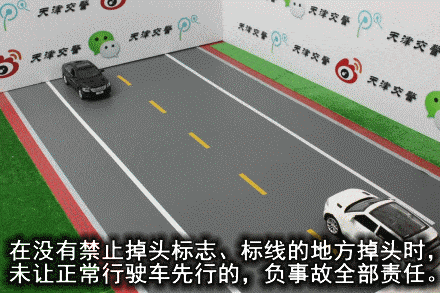 13、在有禁止调头标志标线的位置,以及在人行横道线、桥梁、隧道、陡坡进行调头的,负事故全责。
