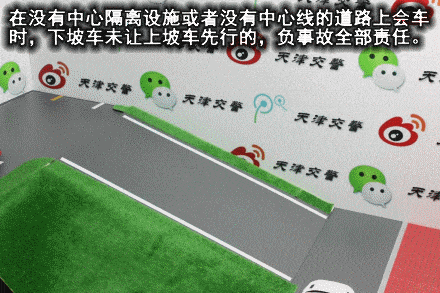 17、在没有中心隔离设施或者没有中心线的道路上会车时,下坡车辆与上坡车辆都已行至路中时,下坡车辆未让上坡车辆先行的,负事故全责。