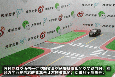8、通过没有交通信号灯控制或交通警察指挥的路口时,相对方向行驶的车辆,右转弯车辆未让左转弯车辆先行的,负事故全责。