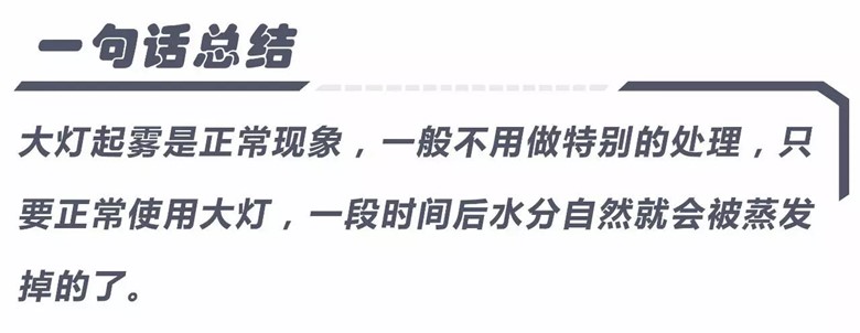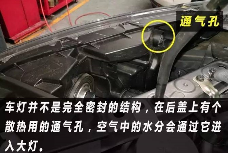 大灯偶尔起雾其实是很正常的现象,不管是新车旧车,还是卤素,氙气、LED,几乎都会出现不同程度的起雾现象 ,因为大灯并不是完全密封的,在它后盖上有一条用于散热用的通气管,大灯工作时产生的热量就是从通气管排出的,以保持大灯工作温度的稳定性,不过也正是这条通气管,在雨雾天气或者是冬天温度较低的情况下,空气中的水分会通过它进入大灯,从而造成车灯起雾。