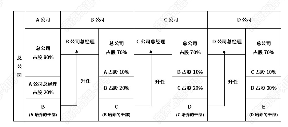 如何设计子公司扩张的股权激励? 发表评论 子公司扩张可以解决项目分流的问题。 子公司股权激励是一个有效解决公司管理层和骨干员工出路问题的途径。 怎么设计子公司扩张的股权激励? 一、子公司类型与股份分配 说明:全资子公司的总经理前期是在职分红股,后期转注册股。 二、子公司扩张与股权设计 横向扩张: 纵向扩张: 相关文章七大管理工具:SWOT、PDCA、6W2H、SMART、WBS、时间管理、二八原则借方和贷方是什么意思 会计分录怎么分清谁是借方,谁是贷方?一文讲完PPP、EPC、PMC、DB、DBB、CM、BOT概念及优缺点全解内部审核和管理评审的联系和区别是什么?竞争性谈判和竞争性磋商有什么区别?