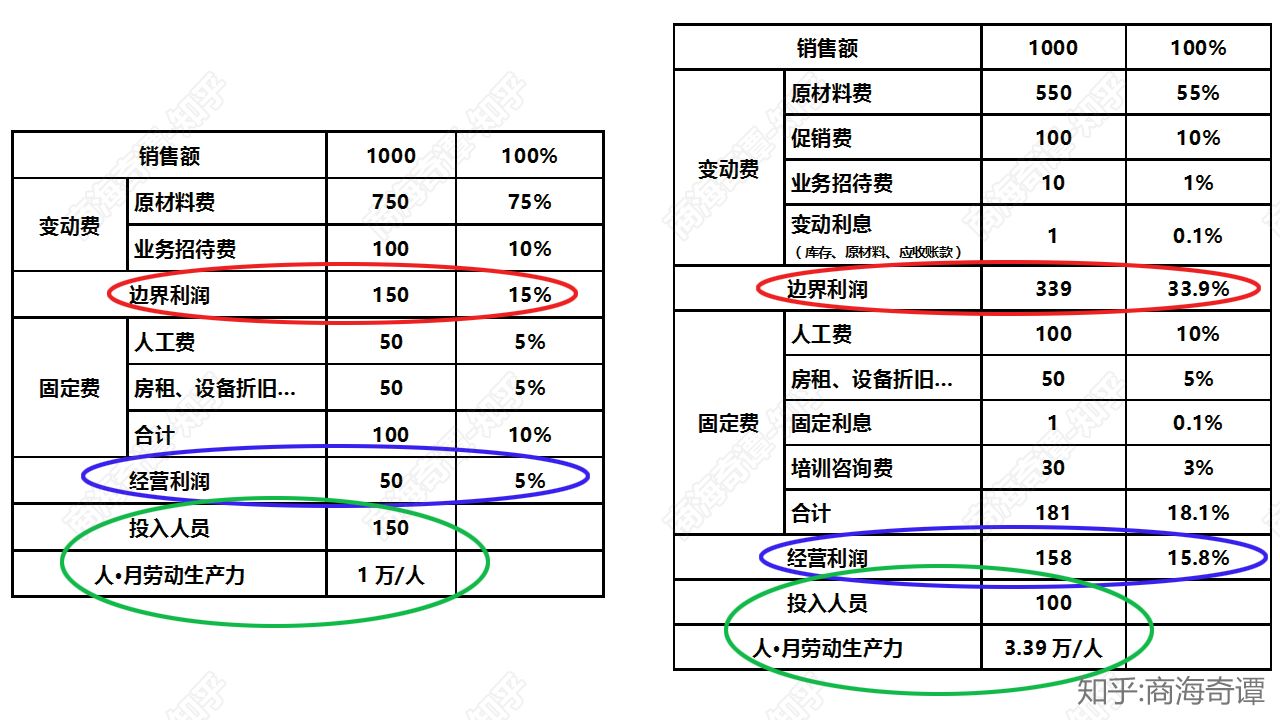 同样的销售额,不同的利润和生产力,体现了经营能力的提升。(创造现金流能力的提升)