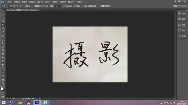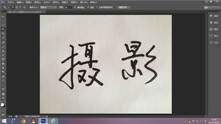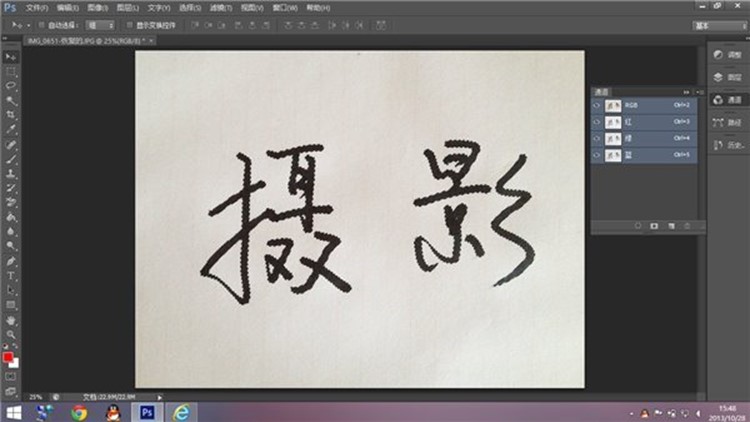 对比度调好后,现在要对文字进行抠图,方法有很多,最方便的算魔棒和通道。