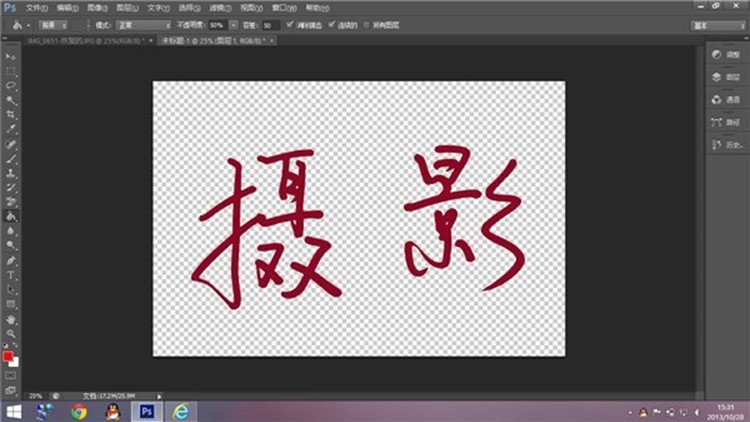 回到照片,还是用左边的移动工具(左侧栏最上面那个鼠标图标)将选区内的文字拖到新建画布中: