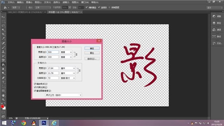 这时的水印毕竟还太大,用起来不方便。按Alt+I+I更改画布大小,还是调成n00*n00的: