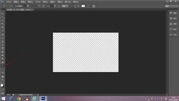 画布建好后,点击左边工具栏的"T"形文字工具:
