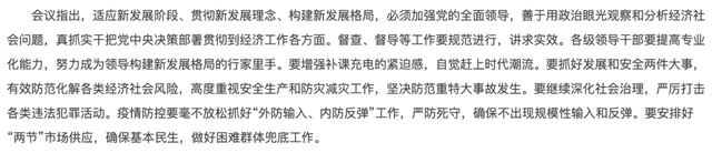会议强调,继续做好“六稳”“六保”工作,持续改善民生,着力稳定宏观经济大盘,保持经济运行在合理区间,保持社会大局稳定,迎接党的二十大胜利召开。