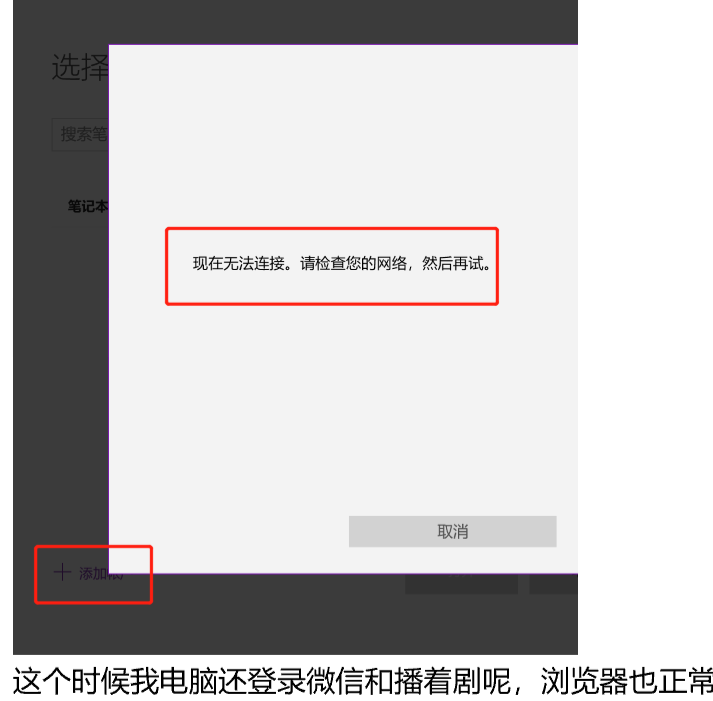 楼上的,我也是!!!试了一天没能同步,迟迟不敢重装系统,害我重新一页页拍了笔记,而且明明能够上网,但是onenote想切换账户却显示“现在无法连接,请检查您的网络,稍后再试!”