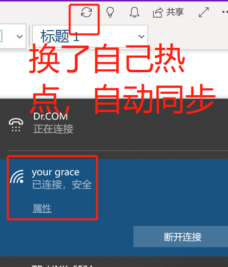 解决:我最后是换个网,接自己的热点,然后重新打开onenote,就能自己同步了!!