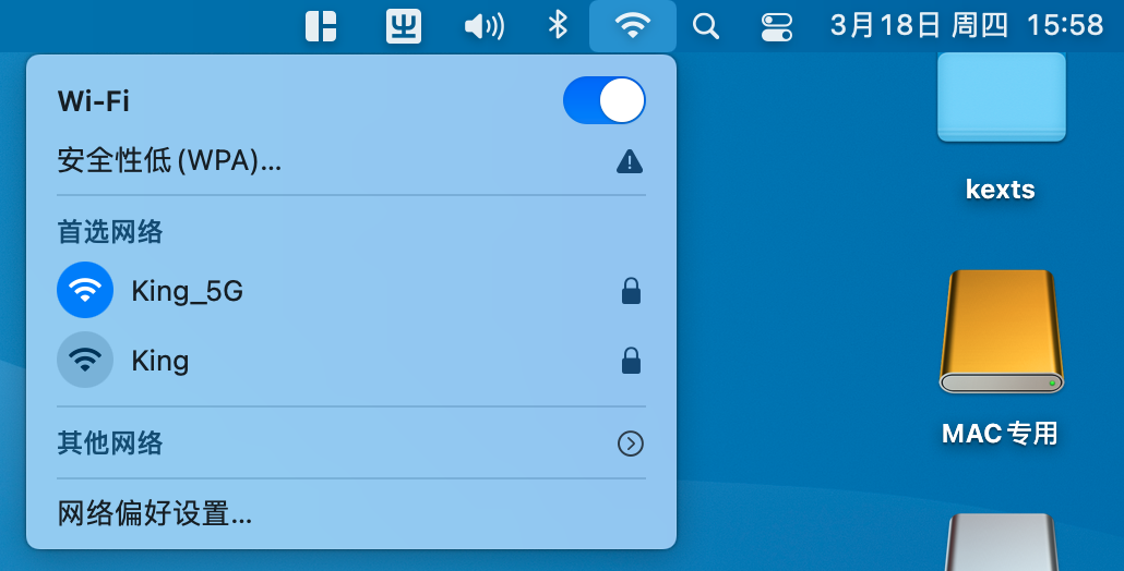 itlwm是国人开发的intel无线网卡驱动,当前稳定版为1.2.0,能够访问网络,但暂时不能达到正常网速。测试版1.3.0alpha速度有一定提高,但仍未达到满速。