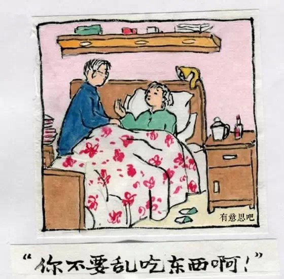 你不要乱吃东西。美棠在家中卧病时,某日傍晚,我正在房里,她忽然叫我走近,对我说:“你不要乱吃东西,也不要骑脚踏车了。”显得神志清醒而且正常,但时间很短,不一会,她又昏昏睡去,以后思维又糊涂起来。