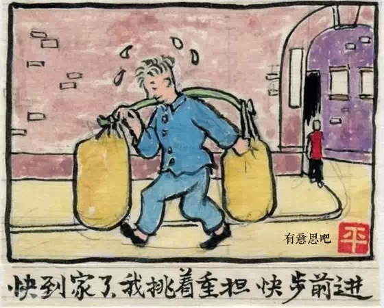 快到家了,我挑着重担快步前进。每年一次的春节回家探亲是我最兴奋而忙碌的日子,半个多月以前就要开始准备:首先,请好假,然后是借钱(30元左右,因可多买点物品。此款相当于下个月的工钱,返厂后立即可以归还)。所买物品包括糯米、芝麻、黄豆、花生米、瓜子、菜油、麻油、鸡蛋、咸鹅等等,总重量为120斤左右。