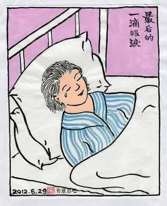 美棠最后一滴眼泪。2008年3月19日,我们到徐汇区中心医院肾内科去看望美棠。约10时,我看到她的右眼眶湿润了,并且缓缓地流出了一滴挂在眼角上的泪。当天下午4时23分,美棠撒手而去了。