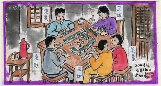 在贵州一起打麻将。贵州安顺无电影院,无公园,无百货商店……唯一娱乐,乃是与定姐、会计老吴、出纳老赵打麻将而已。定姐精通此道,稳是赢家。我和美棠坐在一起联合起来,总是输。