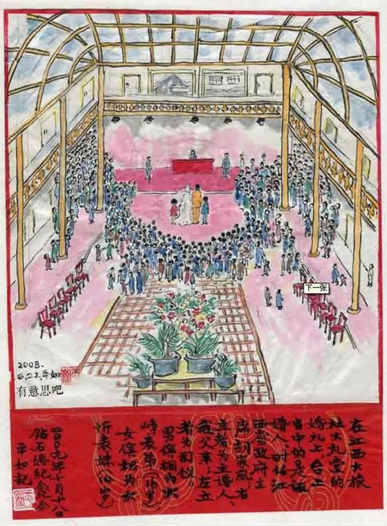 去买结婚用品。1948年夏,美棠和我去买结婚用品。我们走进一家著名瓷器店选购了两只红色的,价格不菲,带回来后,岳父大笑,说:“你们不懂啊!怎么到古董店去买碗呢?”