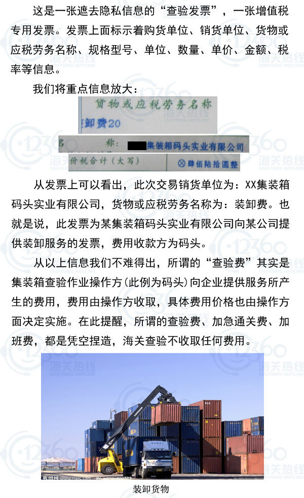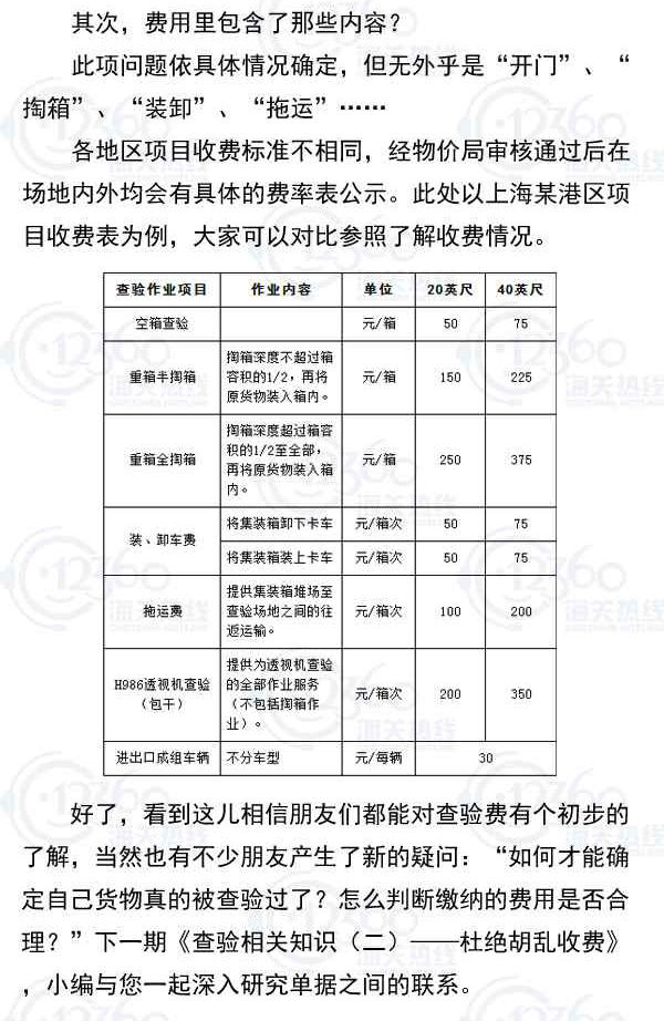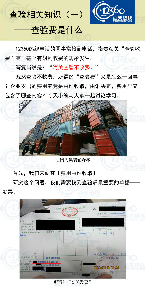 海关查验不收费之——“查验费”是啥子哟? 发表评论 常有企业货主反映海关“查验费”太贵,企业负担重压力大,也有细心的朋友发现收到的“查验发票”是由港区物流公司出具的。其实,海关查验根本就不收任何费用啊!那这个“查验费”到底是什么呢?请看下图: 相关文章快递为什么要报关?JAC版外贸工具书老鸟之路/ SAM带你进阶顶尖销售 (技巧/意识/心态/案例)老鸟之路/ SAM带你深入解读开发信和回复率 颠覆你的思维!TIN代码、CIK代码和LEI代码是什么企业代码的缩写?