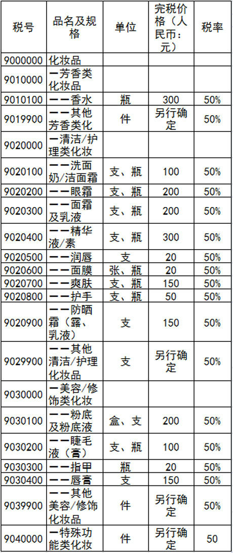 根据海关总署公告2012年第15号,海关给常见的化妆品都确定了一个完税价格,在《入境旅客行李物品和个人邮递物品完税价格表》中可以找到它们。如下表部分:
