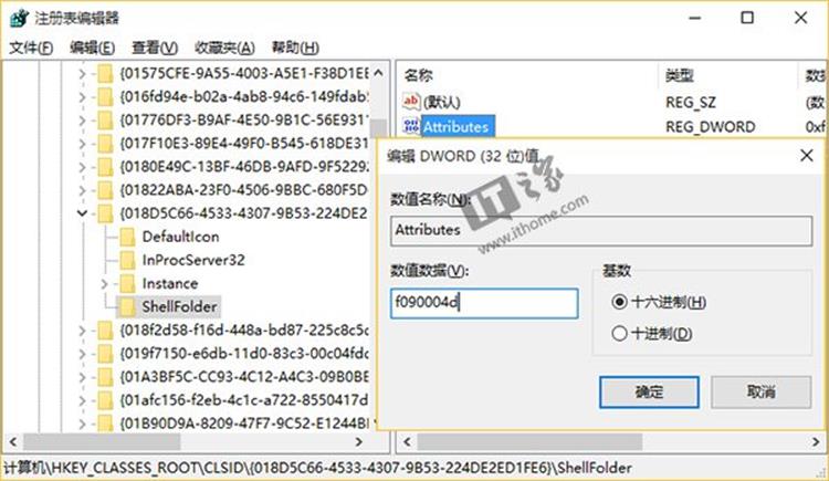 • 在右侧找到Attributes,双击将其值修改为f090004d。