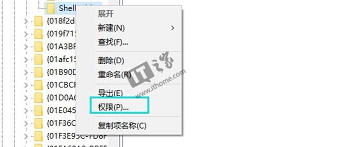 • 在需要获取权限的注册表项上右键单击,选择"权限";