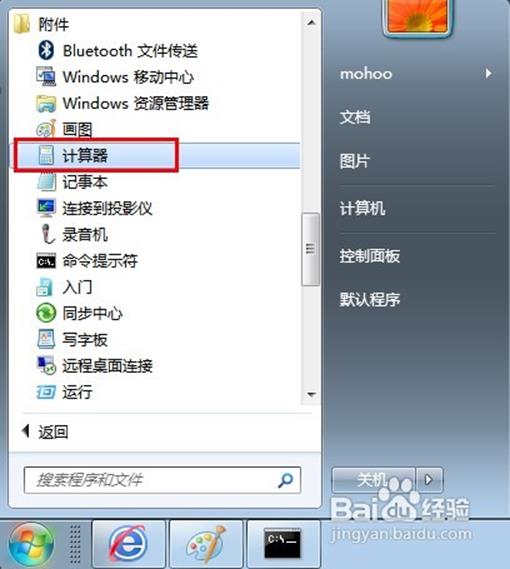 打开开始菜单中选择计算器