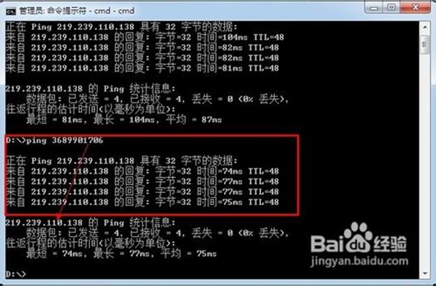 首先我们选择一个IP地址,这里我找了一个,PING一下,是通的。好就用这个IP地址做测试吧。