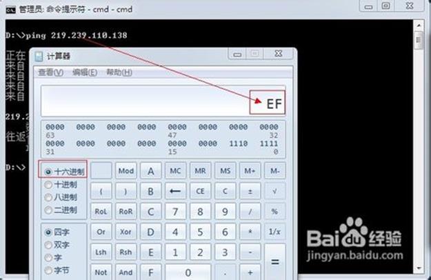 如图,将十进制的239转换为了十六进制的EF