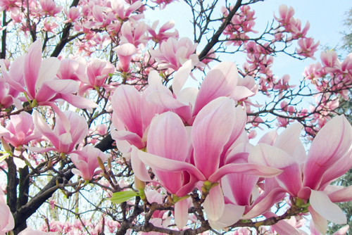 海宁路上两边都种植着高大的玉兰树,因为气候湿润,长的非常好,并且一边是淡奶黄色玉兰花,一边是粉紫色玉兰花,盛开的时候非常美。