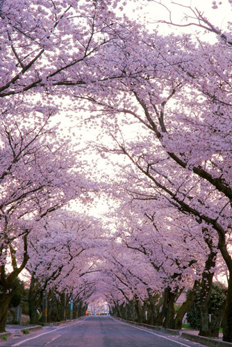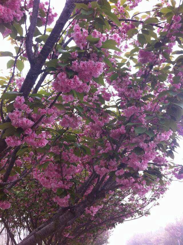 文章最前面的那段描述,写的就是这条路,很美,道路两旁都是生长期在10年左右的樱花树,盛开的时间真的跟彩色的云朵一样,都连到了一起。手机拍摄,没有任何技巧,请大家自行想象