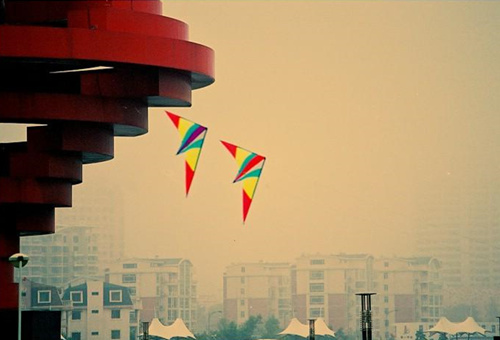 去五四广场放风筝,比谁风筝飞的高。