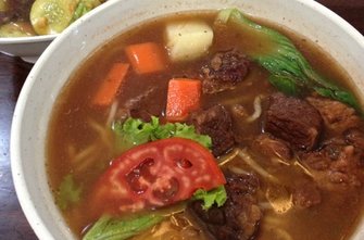 推荐理由:满满一碗,汤很鲜美有牛肉味道,粉很滑比较软,辣椒很香。