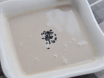 制作:将黑芝麻与浸泡过的黄豆入入豆浆机杯,开动豆浆机自动完成