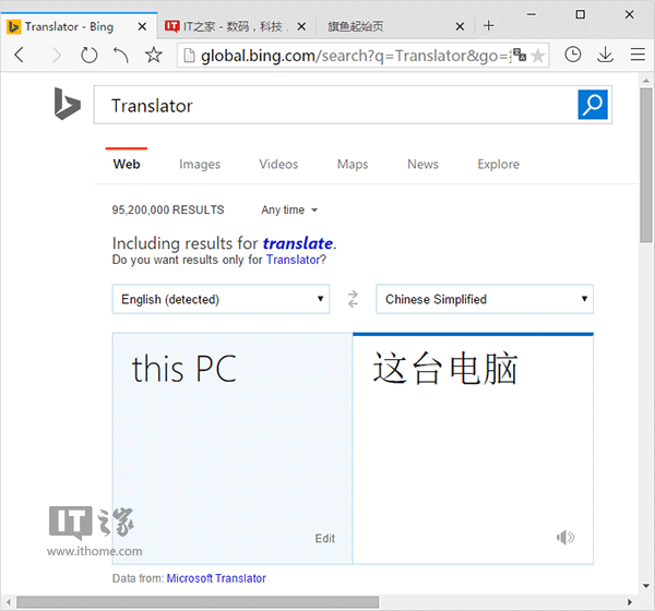 用"计算机"也不太合适,因为云概念的加入,让"计算机"的概念得到扩充,你能在这两款系统上使用的"计算机"可能不仅限于当前的客户机,还包括OneDrive等各种网络相关的计算机,而点击电脑图标看到的基本上还是仅限于"此电脑"上的文件,所以这种叫法更加精确。至于"这台电脑"为什么改成"此电脑",可能是"改名部"觉得这样更好听吧。下图是微软必应机器翻译的结果——