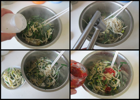 9. 这样两种口味的“素拌银芽三丝” 就完成了。